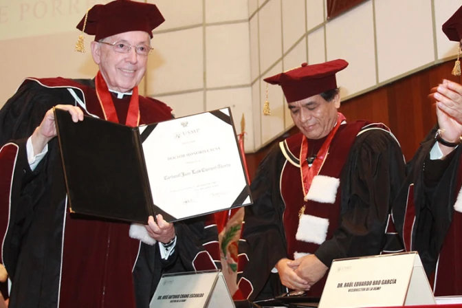 El Arzobispo de Lima y Primado del Perú, Cardenal Juan Luis Cipriani Thorne, fue distinguido con el Doctorado Honoris Causa de la Universidad San Martín de Porres (USMP). En su ponencia en esa casa de estudios dijo que para resolver los problemas más complejos de la sociedad es necesario contar con hombres y mujeres que defiendan la vida, el matrimonio y la familia.