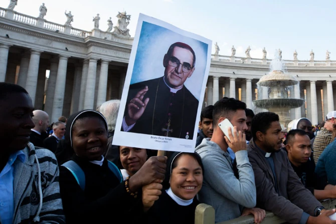 "Sobre tanto sufrimiento, y sobre el presente de ustedes y de sus familiares hoy en El Salvador, vela un salvadoreño santo: San Oscar Romero, que incluso algunos aquí presente conocieron personalmente", dijo el Prelado.
