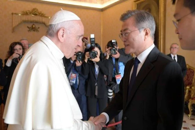 El Papa Francisco recibió en el Palacio Apostólico del Vaticano al presidente de la República de Corea, conocida también como Corea del Sur, este jueves 18 de octubre.