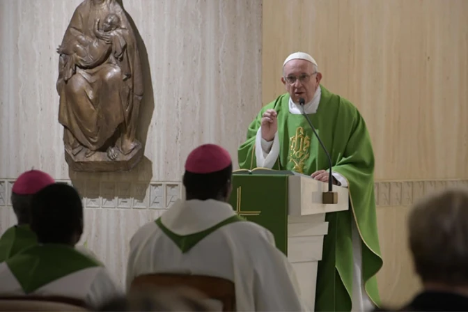 El Santo Padre dedicó su homilía a reflexionar sobre la esperanza, y la describió con la imagen de una mujer embarazada que espera alegre el encuentro con su hijo que va a nacer, y todos los días pone sus manos sobre la barriga para acariciar al niño. De la misma manera, el cristiano vive la esperanza del encuentro con Jesús.