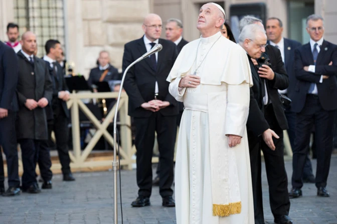 El Santo Padre llegó a la Plaza a las 4.00 p.m. (hora de Roma) proveniente de la Basílica Pontificia de Santa María Mayor, donde oró brevemente ante la imagen de la Salus Populi Romani, patrona y protectora del pueblo romano.