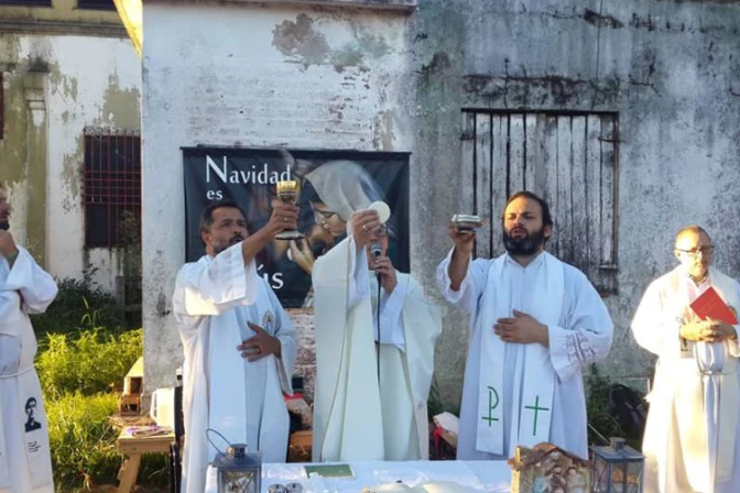 "Estuvo en condición de 'sin techo' y aquellos que tenían que procurarle un techo, golpearon puertas… El lugar, el techo, el cobijo, lo encuentran en una cueva de animales. Y allí nace el Hijo de Dios, porque 'no hay techo'", dijo el Obispo.