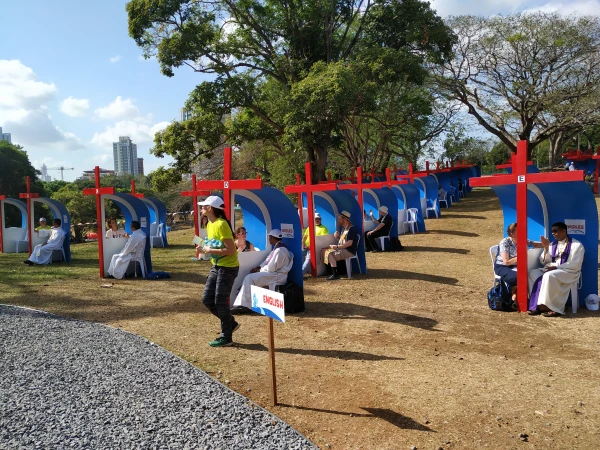 Elmer Vaca, encargado de logística en el Parque del Perdón, indicó a ACI Prensa que hay un total de 203 confesionarios armados en el lugar.