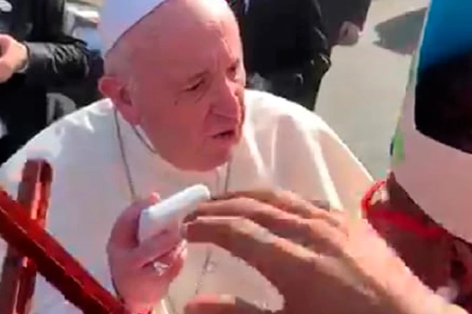 El hecho ocurrió esta mañana frente a la sede diplomática. El Papa se bajó del vehículo en el que iba para acercarse a un grupo de peregrinos entre los que estaba Hayera Mollik, una odontóloga de profesión que fue a la sede diplomática con el deseo de ver al Santo Padre.
