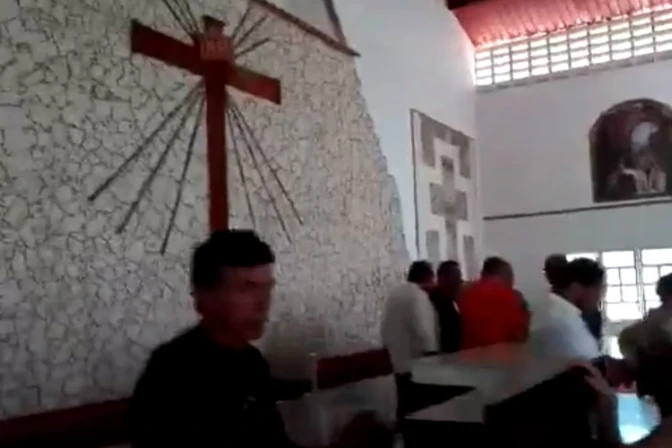En un video que circula en redes sociales, un sacerdote señala que los violentos destruyeron "el ornato de la iglesia, han profanado el Santísimo Sacramento, han hecho disparos dentro del templo para dispersar a los creyentes que estaban en la Eucaristía".