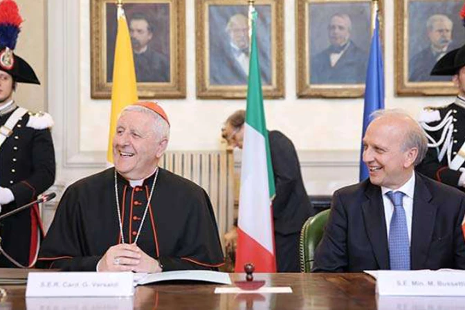 El acuerdo fue firmado el 13 de febrero en la sede del Ministerio de Educación, Universidad e Investigación de Italia por el Prefecto de la Congregación para la Educación Católica, Cardenal Giuseppe Versaldi; y el ministro de Educación, Universidad e Investigación italiano, Marco Bussetti.
