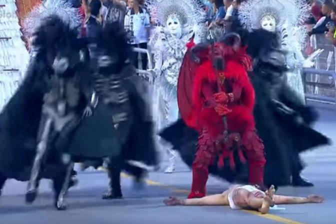Una escuela de samba en el Carnaval de Sao Paulo, en Brasil, mostró en uno de sus bailes al diablo "venciendo" a Jesús, una escena que ha indignado a muchos en las redes sociales.