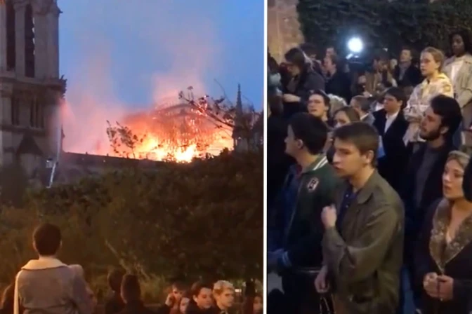 En un video publicado en Twitter se puede ver a un grupo de franceses con el rosario en las manos, algunos de rodillas, cantándole a la Madre de Dios, a quien está dedicada la catedral parisina.