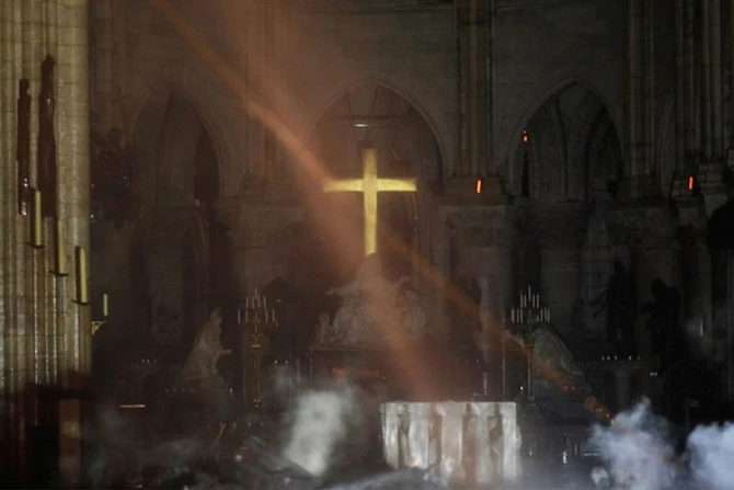 El altar y la cruz que preside el presbiterio de la Catedral de Notre Dame de París han resistido intactos al voraz incendio que en la noche del lunes 15 de abril destruyó las cubiertas, la aguja y parte de la bóveda de este conocido templo gótico de más de 800 años de antigüedad y símbolo del cristianismo.