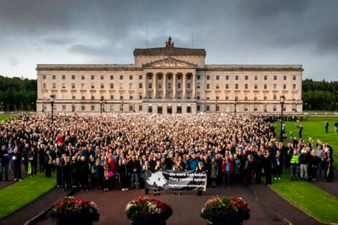 Cerca de 20 mil personas hicieron un plantón pacífico y silencioso frente a los edificios del Parlamento de Irlanda del Norte, en rechazo a la posible liberalización del aborto en el país.