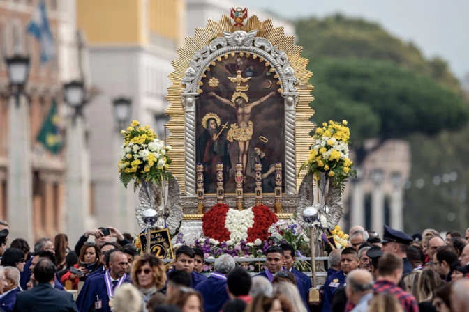 También en Roma se vive esta devoción, la Hermandad del Señor de los Milagros tiene en la capital italiana alrededor de 200 miembros divididos en cuatro cuadrillas.