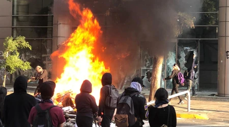 El estallido social comenzó el lunes 14 luego de que grupos de estudiantes encabezaron manifestaciones masivas en varias estaciones del Metro de Santiago, en respuesta a la convocatoria que alentó a ingresar al tren subterráneo sin pagar el pasaje que aumentó a 830 pesos chilenos (unos 1,17 dólares).