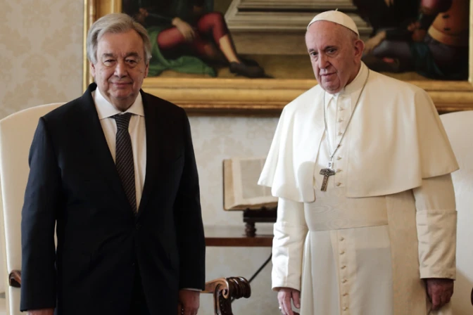 Por su parte, António Guterres afirmó que el Papa Francisco es un "mensajero de esperanza y humanidad por reducir el sufrimiento humano y promover la dignidad humana".