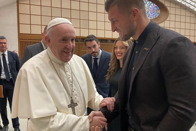 Según relataron a ACI Prensa representantes de la Fundación Tim Tebow, el Santo Padre saludó al final de la audiencia general de este miércoles al deportista y a su esposa Demi-Leigh Nel-Peters, quienes le enseñaron al Pontífice un breve vídeo con escenas de la "Noche para brillar" en donde entraban personas con discapacidad por la alfombra roja.
