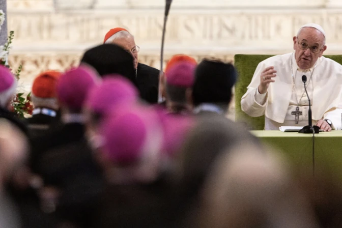Tras los discursos del presidente de la Conferencia Episcopal Italiana (CEI), Cardenal Gualtiero Bassetti; el Arzobispo de Vrhbosna y presidente de la Conferencia Episcopal de Bosnia y Herzegovina, Cardenal Vinko Puljić y el Administrador Apostólico "sede vacante" del Patriarcado Latino de Jerusalén, Mons. Pierbattista Pizzaballa, el Santo Padre dirigió un discurso a los presentes.