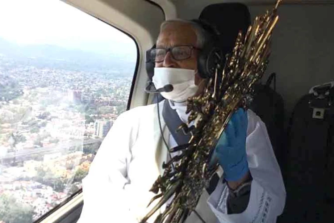 En medio de la pandemia de coronavirus COVID-19, el P. Darío Bragado Rodríguez, sacerdote de 90 años y canónigo de la Catedral Metropolitana de México, dio la bendición a la capital del país desde un helicóptero en este Sábado Santo.