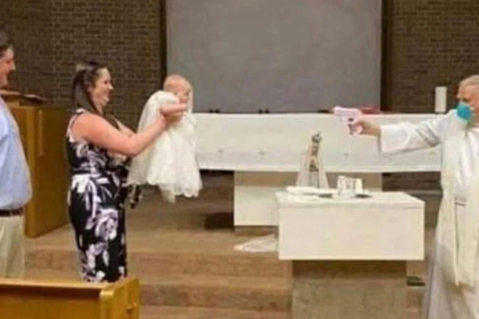 El sacerdote de la parroquia Saint Mark de Manchester (Estados Unidos), que aparece en una fotografía viral donde se representa un bautismo con una pistola de agua, dijo a los feligreses que la foto fue una puesta en escena y que debería ser divertida.