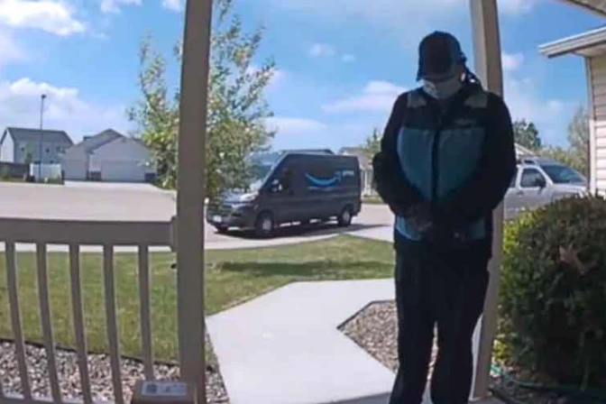Una mujer entregaba un pedido de Amazon en Nampa, en Idaho (Estados Unidos), cuando vio un cartel que le conmovió el corazón y decidió pedirle a Dios por un bebé enfermo. La escena quedó registrada por la cámara de seguridad de la casa y se hizo viral.