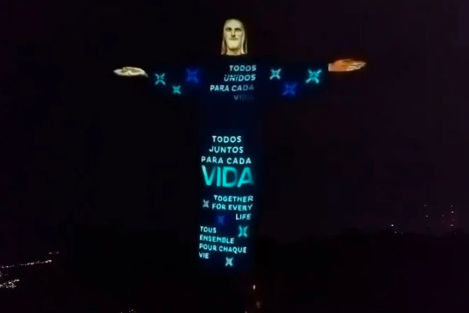 El 18 de marzo las banderas de los 166 países afectados por la crisis sanitaria fueron proyectadas en la emblemática imagen, en un evento de oración, en el que solo participó la prensa para evitar aglomeraciones.