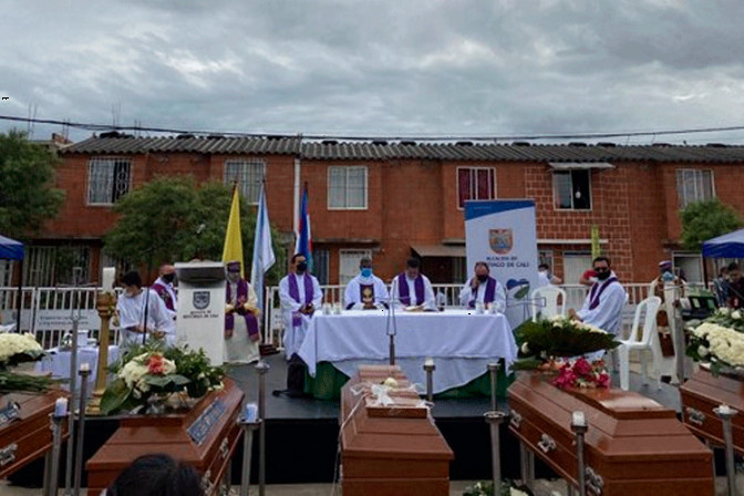 El viernes 14 de agosto se llevó el último adiós a los 5 jóvenes asesinados. El Vicario General de la Arquidiócesis de Cali, P. Winston Mosquera, presidió una Misa en el sector de Llano Verde.