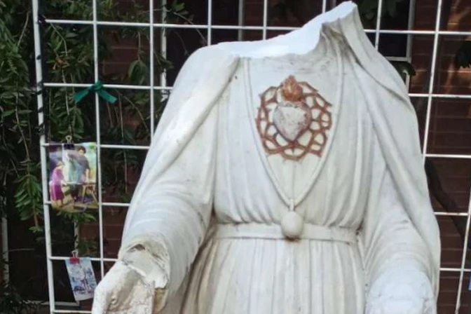 Esta semana, unos desconocidos llegaron a una parroquia de California (Estados Unidos), y decapitaron una estatua de la Virgen María y echaron pintura sobre la escultura de los Diez Mandamientos, acto que fue lamentado por el párroco, quien llamó a toda su comunidad a orar por los atacantes.