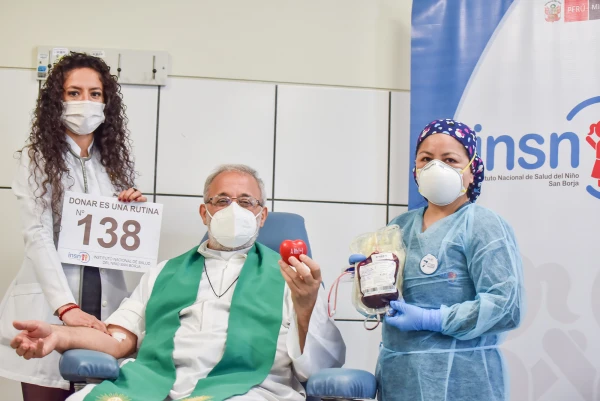 La Directora General del INSN, Zulema Tomas Gonzales, agradeció al sacerdote por su acto solidario e instó a los ciudadanos a donar sangre para ayudar a los niños que sufren enfermedades como leucemia, malformaciones congénitas, cardiopatías, grandes quemaduras, quienes a diario requieren transfusiones.