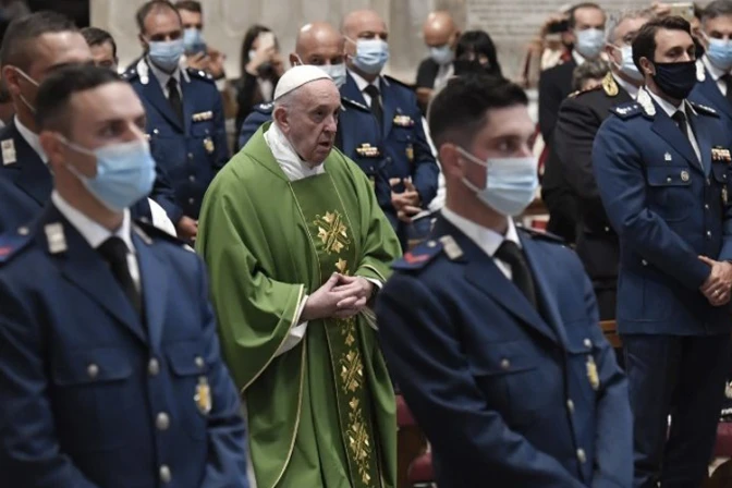 El Papa Francisco celebró una Misa con la Gendarmería Vaticana en ocasión de la próxima fiesta de San Miguel Arcángel, patrono y protector de la Policía de Estado Italiana y del cuerpo de la Gendarmería Vaticana.