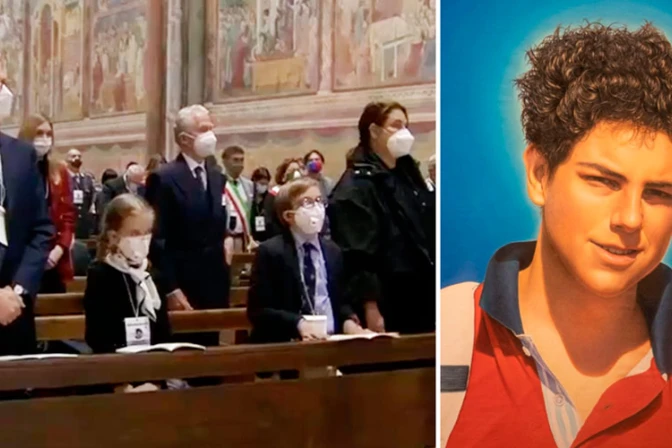 En la primera fila de la Basílica de San Francisco de Asís, los padres y hermanos de Carlo Acutis siguieron con atención la ceremonia de beatificación del adolescente italiano este 10 de octubre.