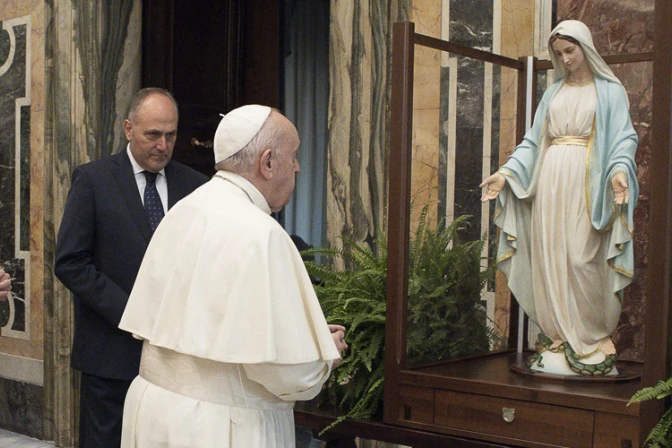El Papa Francisco bendijo una imagen de la Virgen María de la Medalla Milagrosa en el Vaticano con motivo del 190 aniversario de la aparición de la Virgen a Santa Catalina Labouré.