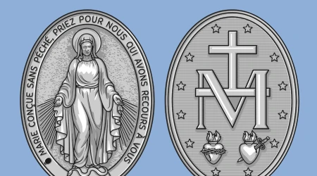 El 27 de noviembre de 1830, Catalina Labouré vio por segunda vez a la Santísima Virgen con un pequeño globo terráqueo, que representaba a la humanidad, en sus manos; contempló su belleza y aceptó la misión de hacer acuñar una Medalla: "¡Las personas que la porten recibirán grandes gracias!".