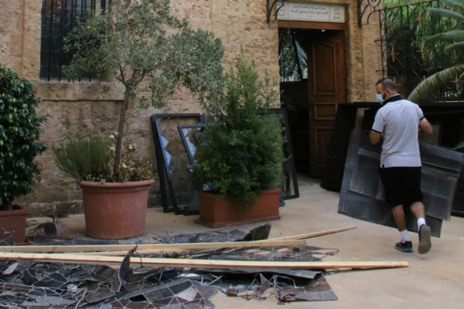 Pese a que está por concluir la fase de limpieza del templo que permitirá que el edificio eclesial pueda volver a usarse, el P. Riachy dijo que en los laterales y la entrada del templo todavía hay cristales esparcidos y marcos de ventanas reventados. Además, señaló que la sala de cristal que hay en el patio opuesto a la iglesia quedó inutilizado.