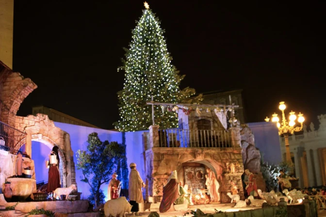 El Papa Francisco destacó que el árbol de Navidad y el pesebre "son signos de esperanza, especialmente en este tiempo difícil".