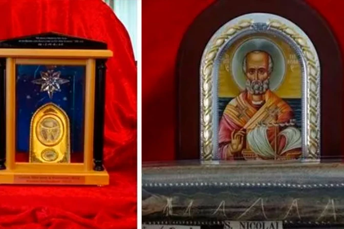 Asimismo, el santuario expone reliquias de San Nicolás, un obispo católico del siglo III de la actual Turquía y que es la base para el personaje navideño conocido como Papa Noel o Santa Claus.