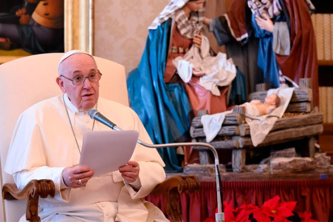 En un mensaje difundido este lunes 4 de enero por medio de su perfil oficial de la red social Twitter, el Santo Padre afirmó que "como en Belén, también con nosotros Dios quiere hacer grandes cosas a través de nuestra pobreza. Puso toda nuestra salvación en el pesebre de un establo y no tiene miedo a nuestra pobreza. ¡Dejemos que su misericordia transforme nuestras miserias!".