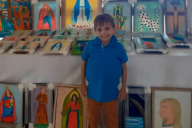 Los cuadros del pequeño Daniel son mayormente de santos católicos, pero también creó la imagen de Nuestra Señora de los Riñones, para que la Virgen lo proteja durante la operación e indique a los médicos cómo realizar la intervención con éxito.