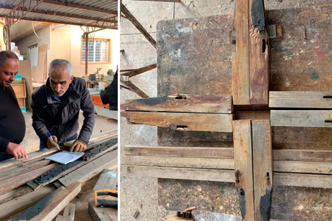 "La cruz de tres metros estará en la oración de sufragio que hará el domingo el Papa en Mosul. La madera ha sido tomada de la iglesia St. Adday en Karamlech", de donde el sacerdote es párroco ahora.