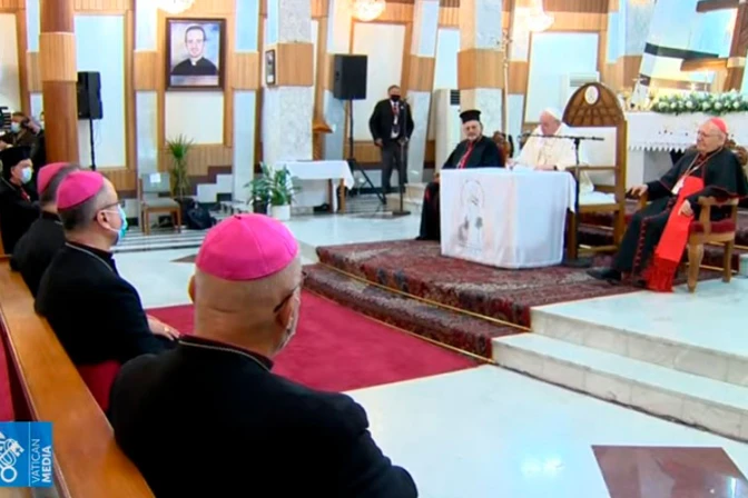 Antes de finalizar el primer día de su viaje apostólico a Irak, este viernes 5 de marzo, el Papa Francisco se reunió en la Catedral católica siria de Nuestra Señora de la Salvación, en Bagdad, con obispos, sacerdotes, religiosos y religiosas, seminaristas y catequistas. En su discurso, recordó a los 48 fallecidos y 70 heridos víctimas de un atentado terrorista de Estado Islámico el 31 de octubre de 2010.