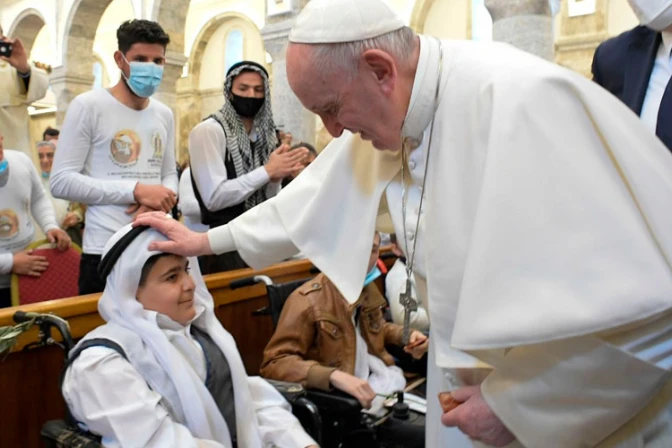 El Papa Francisco, que es el primer Pontífice en visitar Irak, dijo que "seguramente hay momentos en los que la fe puede vacilar, cuando parece que Dios no ve y no actúa. Esto se confirmó para ustedes durante los días más oscuros de la guerra, y también en estos días de crisis sanitaria global y de gran inseguridad". Sin embargo, "en estos momentos, acuérdense de que Jesús está a su lado", afirmó.