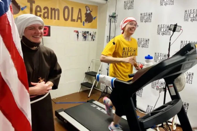 "En abril dije: 'Estoy tan segura de que no van a cancelar la carrera, que si cancelan la carrera, correré una maratón en una cinta de correr'", dijo la religiosa a CNA –agencia en inglés del Grupo ACI-, el 6 de abril.