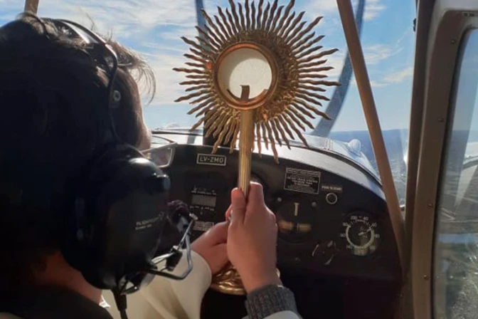 Uno de los colaboradores de la parroquia, Juan María, indicó a ACI Prensa que la iniciativa nació por la imposibilidad de realizar una procesión con fieles por la pandemia de COVID-19 y resaltó que este vuelo ha sido la primera procesión eucarística aérea en Argentina.