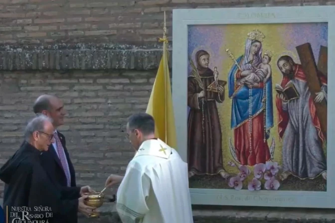 Una imagen de la Virgen de Chiquinquirá fue entronizada y coronada en los Jardines Vaticanos este 9 de julio, en conmemoración de los 102 años de la coronación canónica de la patrona de Colombia.