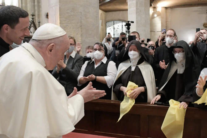 El Papa Francisco participó en un encuentro muy cordial con obispos, sacerdotes, religiosas y catequistas eslovacos, reunidos en la Catedral de San Martín de Bratislava este 13 de septiembre, a quienes animó a caminar como Iglesia "en la libertad del Evangelio, en la creatividad de la fe y en el diálogo que brota de la misericordia de Dios, que nos ha hecho hermanos y hermanas, y que nos llama a ser artesanos de paz y de concordia".