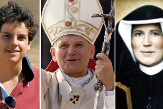 Los santos son el Papa San Juan Pablo II, cuya fiesta se celebra el 22 de octubre, Santa Faustina Kowalska, conmemorada el 5 de octubre, y el Beato Carlo Acutis, cuya memoria recordamos el 12 de octubre.