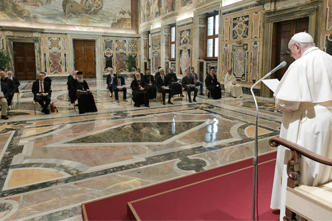 El Papa agradeció a los miembros del grupo por "el trabajo teológico que estáis realizando en servicio de la comunión entre católicos y ortodoxos".