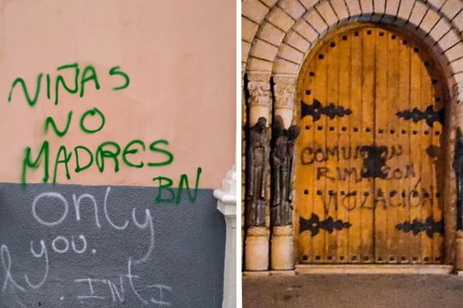 Además, la palabra "pedófilos" fue escrita en el suelo, al ingreso de la iglesia.