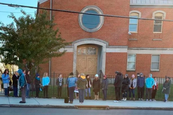 "Motivado para orar, me arrodillé junto a Joanna y ofrecí un Rosario frente a Planned Parenthood", contó Jordan.