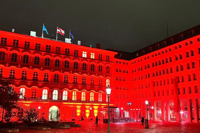 #RedWeek En estos momentos se tiñen de rojo la Catedral de San Esteban en Passau, #Alemania la Casa del Parlamento, el Ministerio del Interior y la Catedral de San Esteban, en Viena, #Austria Por los #cristianosperseguidos y por la #LibertadReligiosa ? pic.twitter.com/VP6mWFCwU2