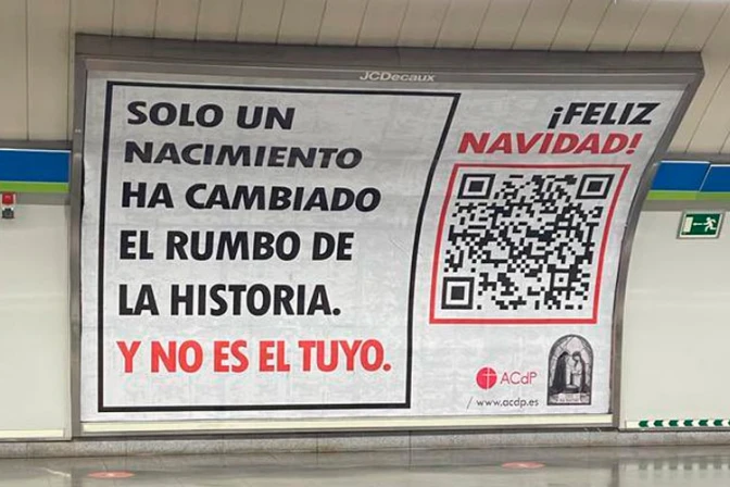 La asociación indicó que la acción publicitaria, desplegada en paradas de autobús y en el metro, busca devolver "el nacimiento de Jesucristo en Belén al centro de las celebraciones" con la frase contundente "Sólo un nacimiento ha cambiado el rumbo de la historia. Y no es el tuyo"