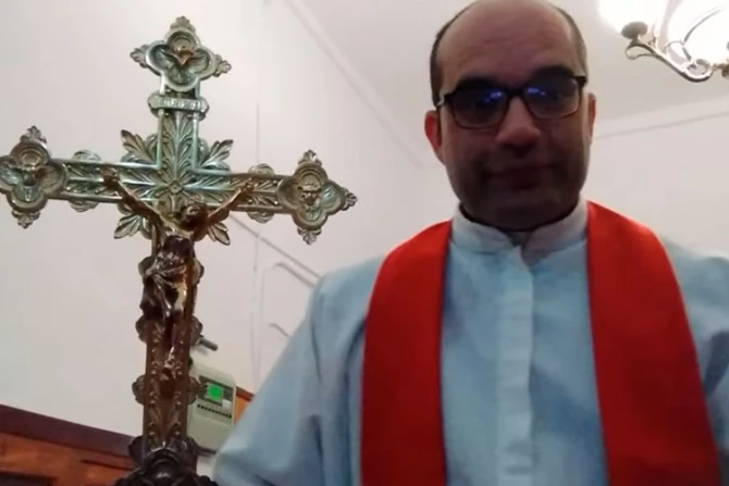 En un video publicado en su cuenta de Twitter, el sacerdote relató que "antes había una tradición: con la cruz parroquial, con la madera que la lleva, se golpeaba la puerta de la iglesia, que se cerraba justo cuando salía la procesión del Domingo de Ramos".