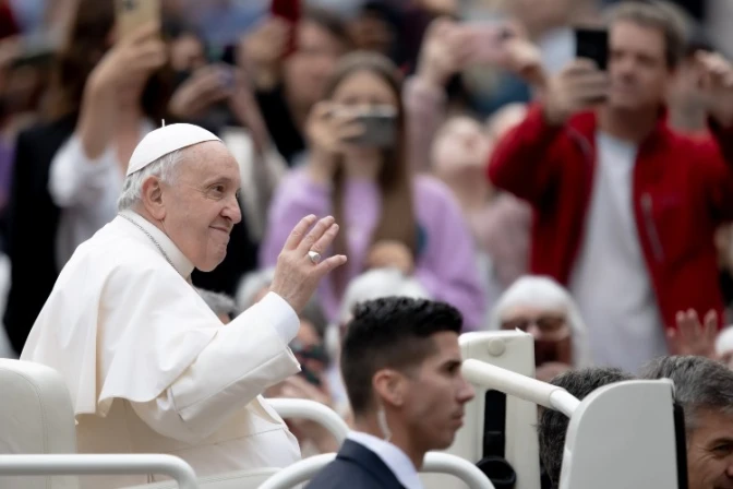 El Papa Francisco presidió la Audiencia General de este miércoles 4 de mayo en la Plaza de San Pedro, un día después de haber sido intervenido por un fuerte dolor en la rodilla.